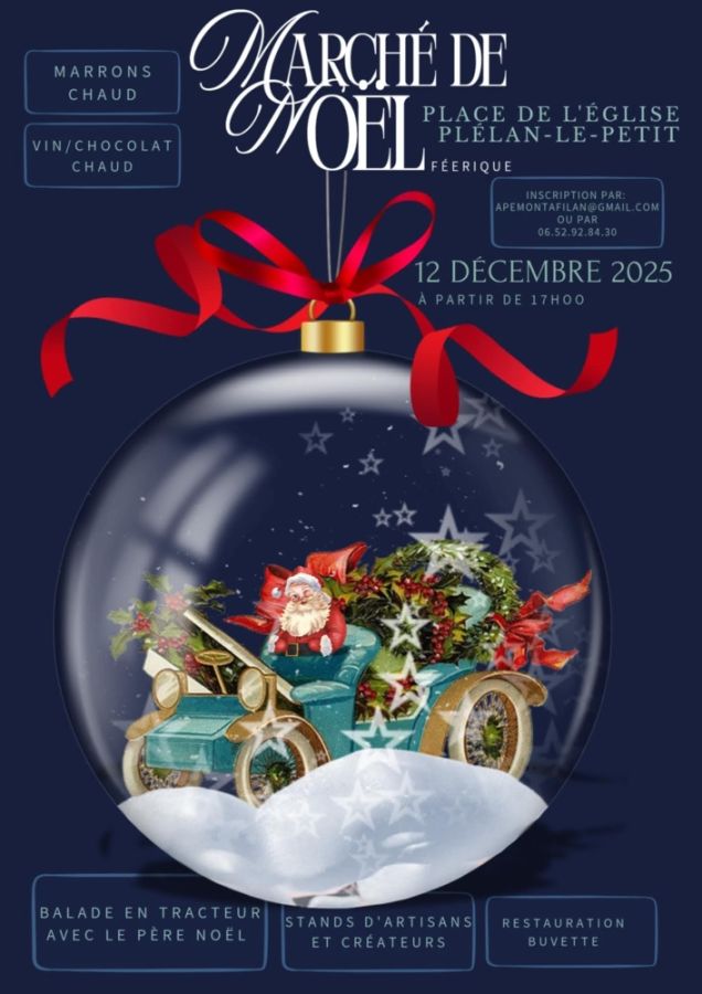 Actualités RDV Vendredi 12 décembre à partir de 17h00 place de l'église Accueil Vivre à Plélan Actualités Marché de Noël Féérique Retour Ecouter Marché de Noël Féérique